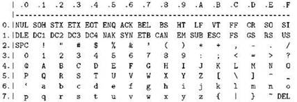 Рис. 2.3. Шестнадцатеричные коды ASCII