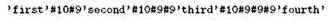 есть валидный строковый литерал, результат выдачи которого на печать (за счёт вставленных в него табуляций и переводов строки) будет выглядеть примерно так: