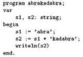 Что особенно приятно, при присваивании стрингов, как и при передаче их по значению в подпрограммы, и при возврате из функций копируется только значащая часть переменной; например, если в переменной, объявленной как string без указания предельной длины, хранится строка из трёх символов, то только эти три символа (плюс байт, содержащий длину) и будут копироваться, несмотря на то, что переменная целиком занимает 256 байт.