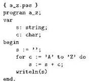 напечатает “ABCDEFGHIJKLMNOPQRSTUVWXYZ”.