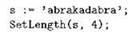 в переменной s будет содержаться строка “аbrа”. Учтите, что SetLength может также к увеличить длину строки, в результате чего в конце её окажется “мусор” — непонятные символы, которые лежали в этом месте памяти до того, как там разместили строку; поэтому если вы решили увеличить длину строки с помощью SetLength, правильнее всего будет немедленно заполнить чем-нибудь осмысленным все её “новые” элементы. Учтите, что меняется только текущая длина строки, но никоим образом не размер области памяти, которая под эту строку выделена. В частности, если вы опишете строковую переменную на десять символов