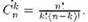 превосходит искомое Cnk ровно в k! раз. Собственно говоря, всё, осталось только поделить
