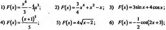 Цели: проверить знания и умения учащихся нахождения первообразных функции в случаях, непосредственно сводящихся к применению таблицы и трём правилам нахождения первообразных; рассмотреть более сложные упражнения по этой теме.
