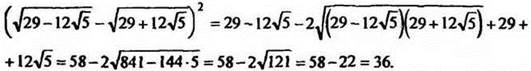 Подкоренные выражения не являются полными квадратами, т. е. применить приём из предыдущего примера не удаётся. Возведём вычисляемое выражение в квадрат: