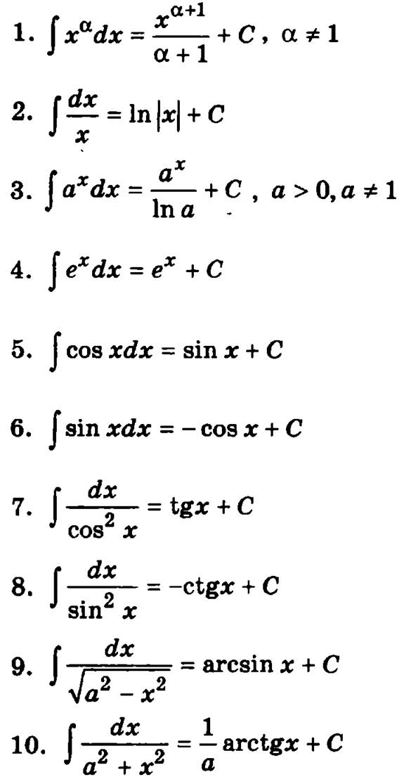 Высшая математика мини-справочник для ВУЗов Таблица интегралов от элементарных функций - НЕОПРЕДЕЛЕННЫЙ ИНТЕГРАЛ ПредыдущаяСодержаниеСледующая