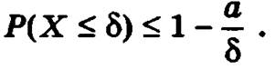 Неравенство Маркова. Если случайная величина X не принимает отрицательных значений и δ — произвольная положительная величина, то вероятность того, что значения случайной величины X не превзойдут величины δ, не превысит 1 – a/δ, где а есть математическое ожидание X