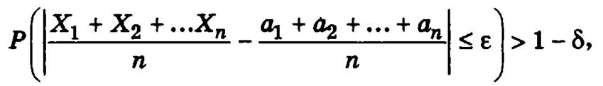 где X1, Х2, ..., Xn — случайные величины, a1, a2, ..., an — их математические ожидания, ε > 0, δ > 0.