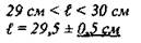 П. Длину листа можно записать так «29 см < l < 30 см» или «l = 29,5 ± 0,5 см». 0,5 см — это погрешность, возникающая при отсчете по шкале метра и равная половине цены деления метра.