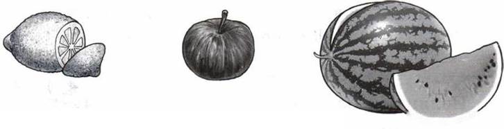 9*. Рассмотри рисунки. Прочитай. Найди ошибки в сравнении яблока и лимона, яблока и арбуза.