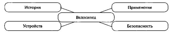 • П, Л Спрашивает, кто уже умеет ездить на велосипеде. Предлагает назвать всё, что знают о велосипедах. Записывает на доске ключевые слова. * Можно предложить вместе составить кластер на тему «Велосипед», используя ключевые слова (см. дополнительные творческие задания) |