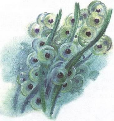 Икра лягушки была холодная и скользкая. Каждая икринка имела внутри маленький тёмный шарик, который снаружи был окружён прозрачной оболочкой.