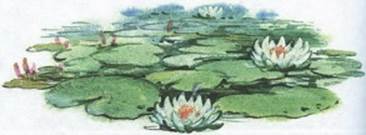 По реке плывёт лодка. В ней отдыхают взрослые. Хорошо им. Ведь как это интересно и приятно — путешествовать на лодке. Но вот люди, плывущие в лодке, замечают недалеко от берега крупные белые цветки. Кувшинка! Цветков всего несколько, а как они украшают реку.