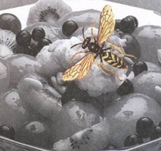 На кухне варится вкусное варенье, открытое окно затянуто мелкой сеткой. И всё же непрошеные гости явились, пробравшись через какую-то щёлку. Это две лесные осы, любительницы сладкого. Не спеши их прихлопнуть, не делай резких движений, и скорее всего ничего плохого не случится. Незваные гости, басовито гудя, полетают, попробуют одну- две капельки варенья и исчезнут.