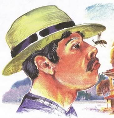 Внезапно он останавливается, прислушивается и смотрит вверх: над его шляпой кружит оса.
