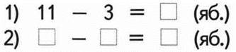 1. Впиши пропущенные числа в решения задачи. В саду 11 яблонь. До обеда собрали яблоки с 3 яблонь, а после обеда ещё с 5 яблонь. Со скольких яблонь осталось собрать яблоки?