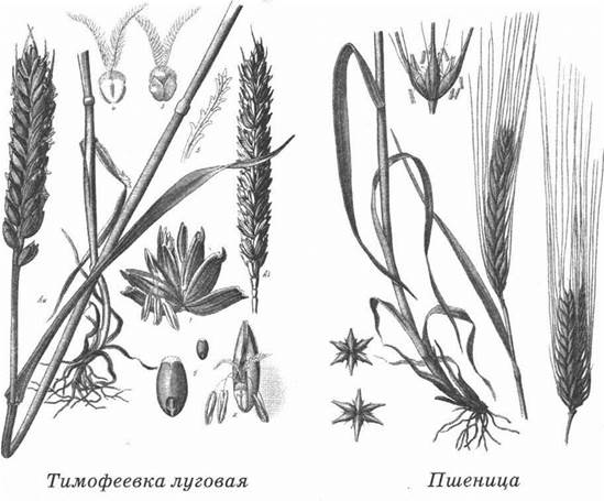 12. Рассмотри рисунки, прочитай текст и сравни описания тимофеевки луговой и пшеницы. На основании описаний укажи хотя бы одно сходство и одно различие этих растений.