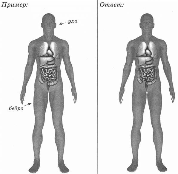 15. Рассмотри изображение человека. На изображении справа покажи стрелками и подпиши следующие части тела человека: лёгкие, кисть, шею.