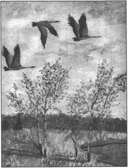 1) Птицы улетают на юг.