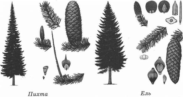 12. Рассмотри рисунки, прочитай текст и сравни описания пихты и ели. На основании описаний укажи хотя бы одно сходство и одно различие этих растений.