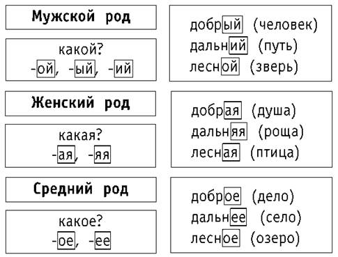 Родовые окончания имён прилагательных. Изменение имён прилагательных по родам