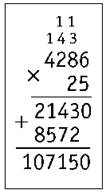 2) Находим первое неполное произведение. Умножаем 4 286 на 5 единиц. Получаем число 21 430.