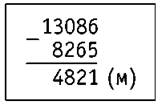 13 км 086 м - 8 км 265 м = 4 км 821 м