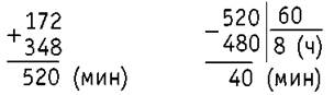 2 ч 52 мин + 5 ч 48 мин = 172 мин + 348 мин = 520 мин = 8 ч 40 мин