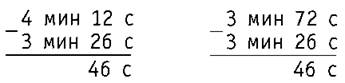 4 мин 12 с - 3 мин 26 с = 252 с - 206 с = 46 с
