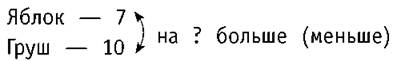 В одной корзине 7 яблок, а в другой — 10 груш. На сколько груш больше, чем яблок?