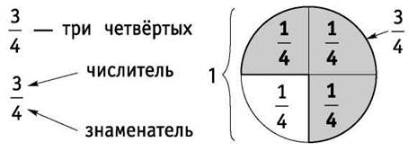 Знаменатель дроби показывает, на сколько равных частей разделена единица измерения.