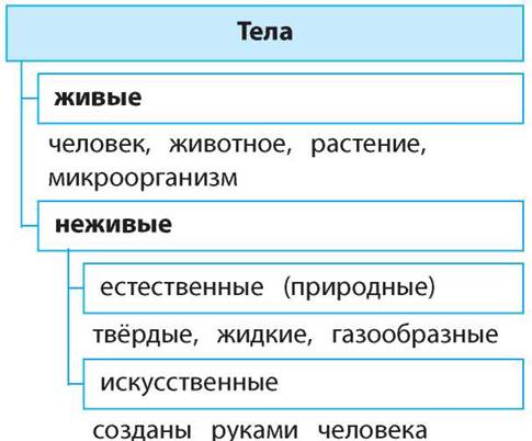 Телами называются все предметы живой и неживой природы, а также предметы, созданные руками человека.