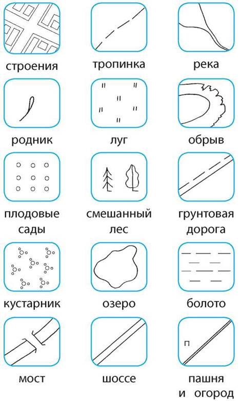 Иногда в своей работе географы используют чертёж с изображением определённой местности с помощью условных значков. Такой чертёж называется планом.