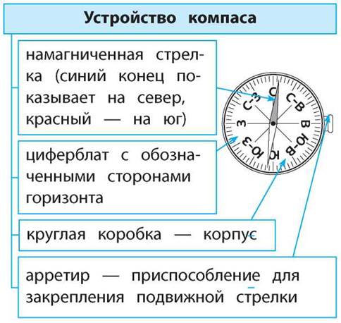 Компас — это устройство, которое облегчает ориентирование на местности. С помощью компаса можно точно определить стороны света.