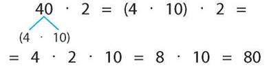 40 · 2 = 4 дес. · 2 = 8 дес. = 80