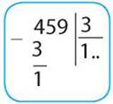 3) Делим первое неполное делимое 4 на 3; ближайшее меньшее число 3 (оно делится на 3 без остатка): 3 : 3 = 1. Цифра 1 — первая цифра в частном. Из 4 вычитаем 3, находим остаток 1. Проверяем: остаток меньше делимого, 1 < 3.