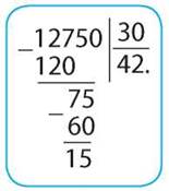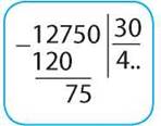 5) Делим 75 и 30 на 10, затем 7 делим на 3. Получилось 2. Записываем 2 в частном. Умножаем 2 на 30. Получилось 60.