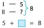 В этой задаче неизвестно слагаемое. Чтобы найти его, нужно из суммы 8 вычесть известное слагаемое 5.