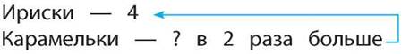 У Тани было 4 ириски, а карамелек в 2 раза больше. Сколько карамелек было у Тани?